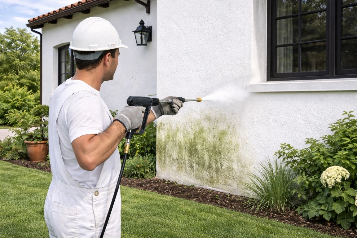 Limpieza de fachadas en Cádiz con lavado a presión y tratamiento antimoho para una protección duradera.